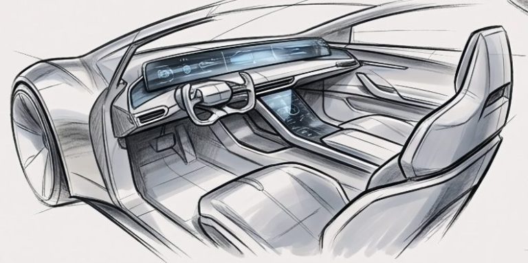 The interior was not required, however the client agreed to at least concept the interior. The style was modern luxurey, futurisic, but familiar. The sketch included a steering yoke, full width instumentation display and curved centre console display.